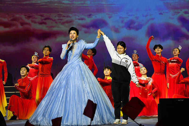 而当晚最具亮点的,是由张征作曲、玉镯儿作词,共同为云南创作的混声合唱《幸福的水花》在闭幕式上完成首演,富宁县多所中小学合唱团共同参与演出,展现了民族音乐传承的蓬勃生机。“今晚的首演很成功,孩子们的表现非常棒!这个是合唱的版本,独唱版本明天就会在各个音乐平台上线。”张征教授告诉记者,刚知道要带着合唱团来云南参加传承周活动时,他有很多想法,当看到这首由玉镯儿老师创作的《幸福的水花》时,就被里面的歌词深深打动,于是便在最短的时间内为这首歌作了曲,带到闭幕式上演出,希望能够让大家感受到云南少数民族的音乐文化和风土人情。“孩子们非常厉害,仅用不到一天的时间和大哥哥、大姐姐们进行合唱排练,没想到呈现出来的效果超乎预期。”张征教授说,富宁县中小学校的学生对音乐充满了热爱和激情,这让他看到民族音乐传承的希望和力量。